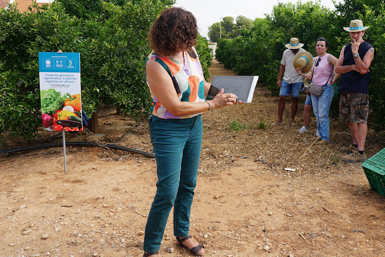 La otra práctica ya explicada es el establecimiento de cubiertas vegetales, seleccionando las mejores especies sembradas para favorecer la biodiversidad y mejorar el control biológico en frutales como kaki, cítricos o granado.